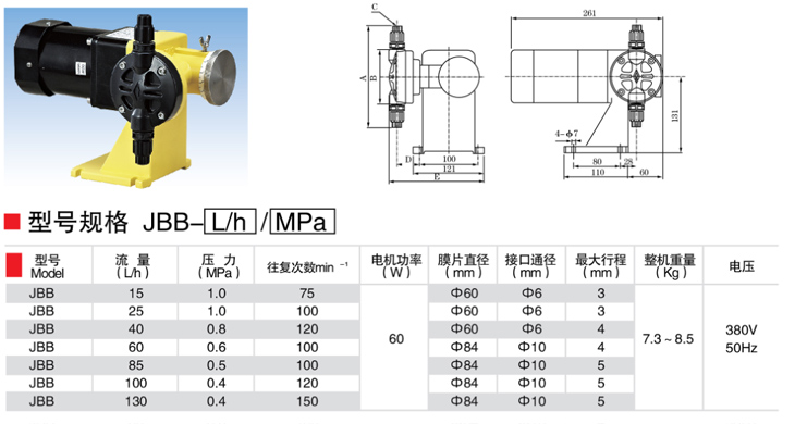 產(chǎn)品名稱:JBB型機(jī)械隔膜式計(jì)量泵