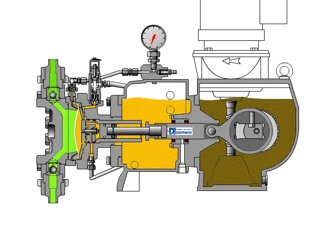 旋轉到沖程長度100%位置。這樣可以使整套部件旋轉至背板漏液排出孔與泵的最底端對齊。在泵運行過程中調整液力端和隔膜至合適的位置。